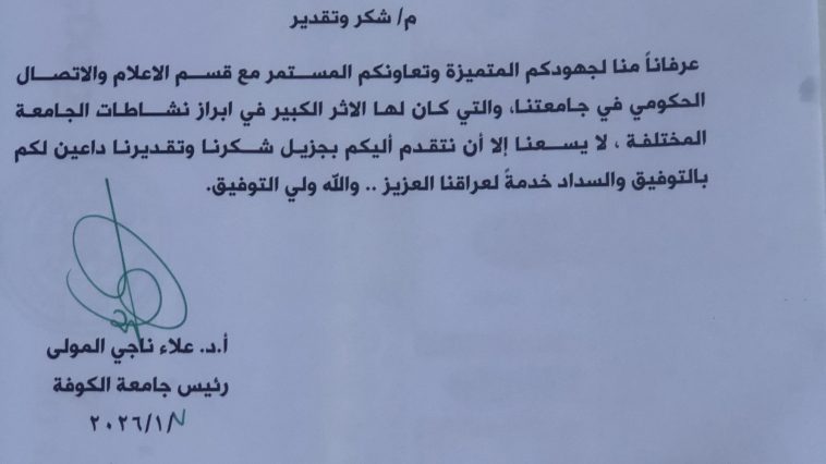 جامعة الكوفة تكرم صحيفة بانوراما الالكترونية في الملتقى الإعلامي السنوي الثالث حول العلاقة بين الإعلام المؤسساتي وإعلام القنوات الفضائية