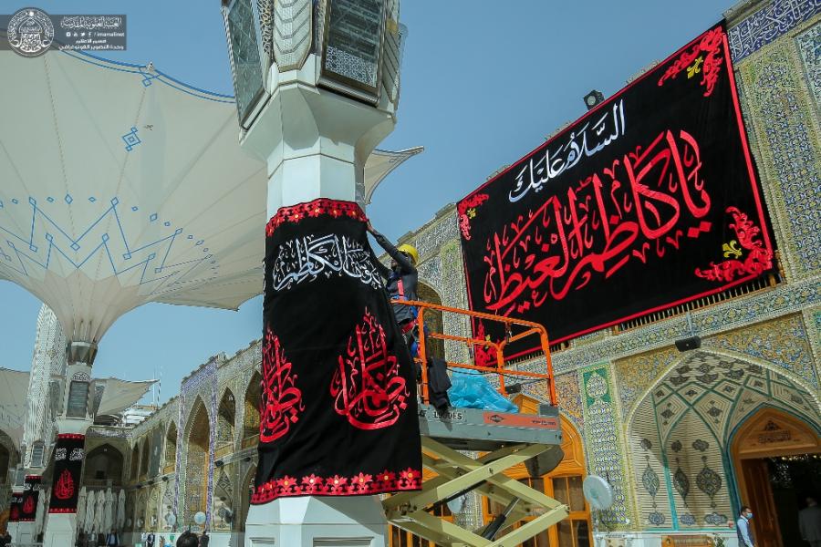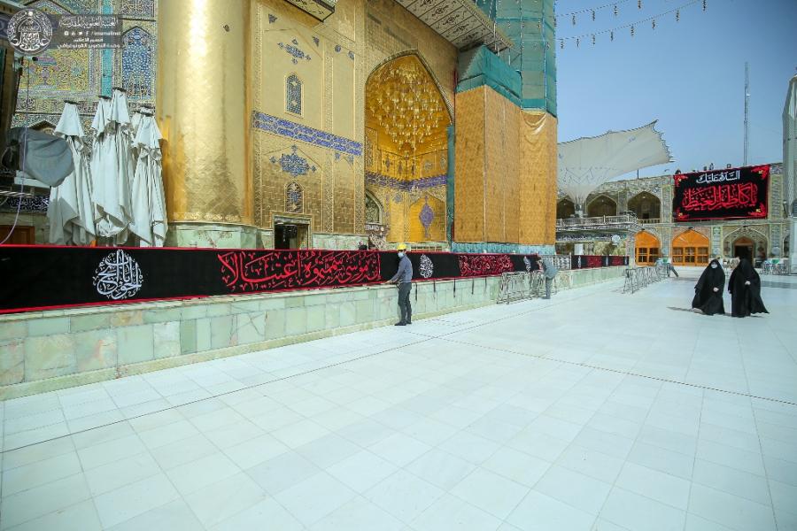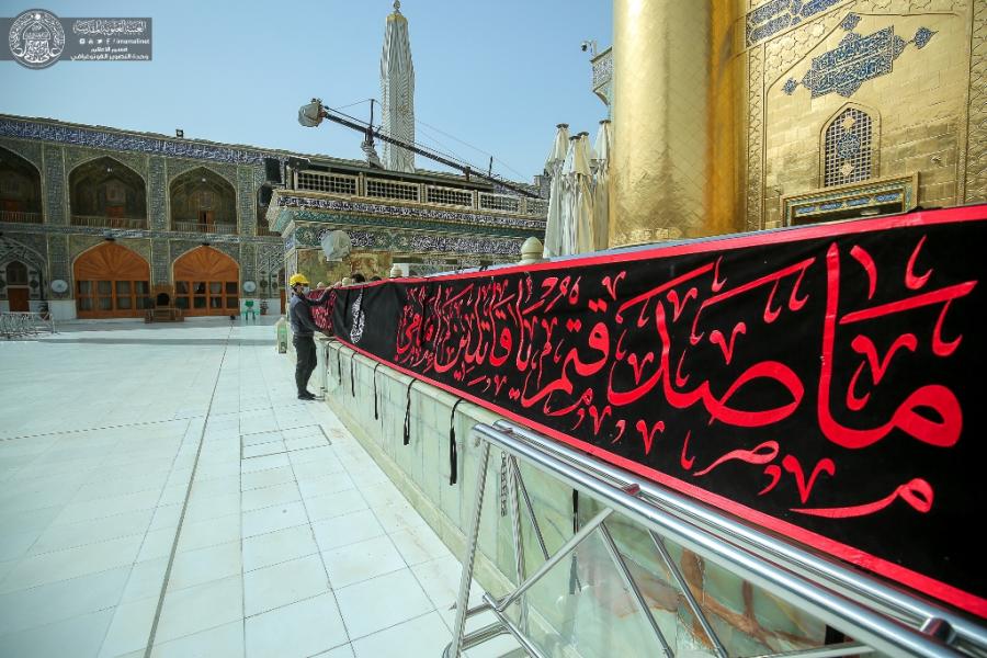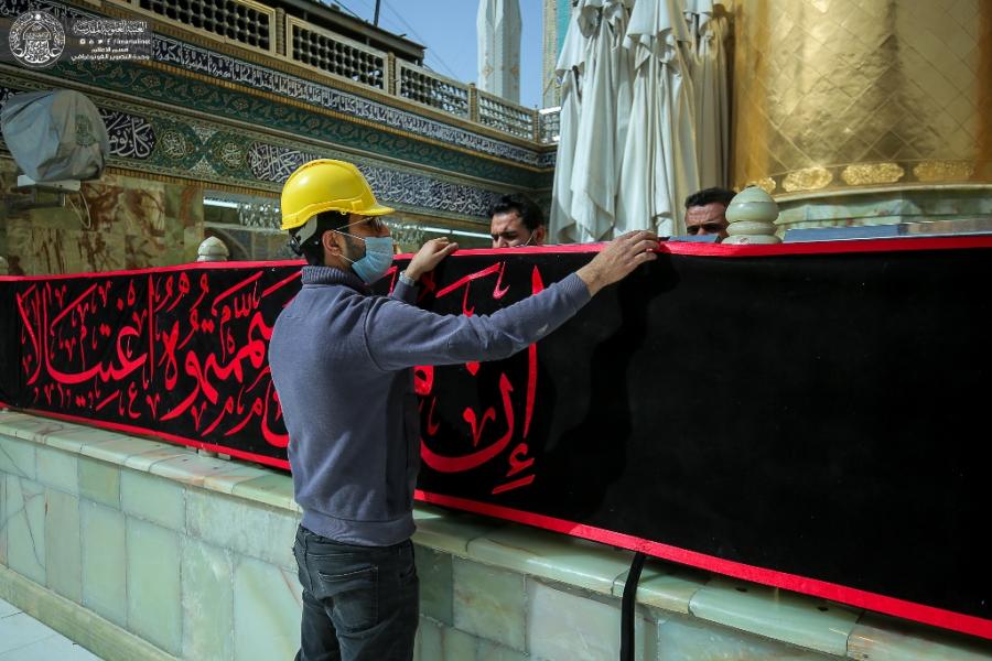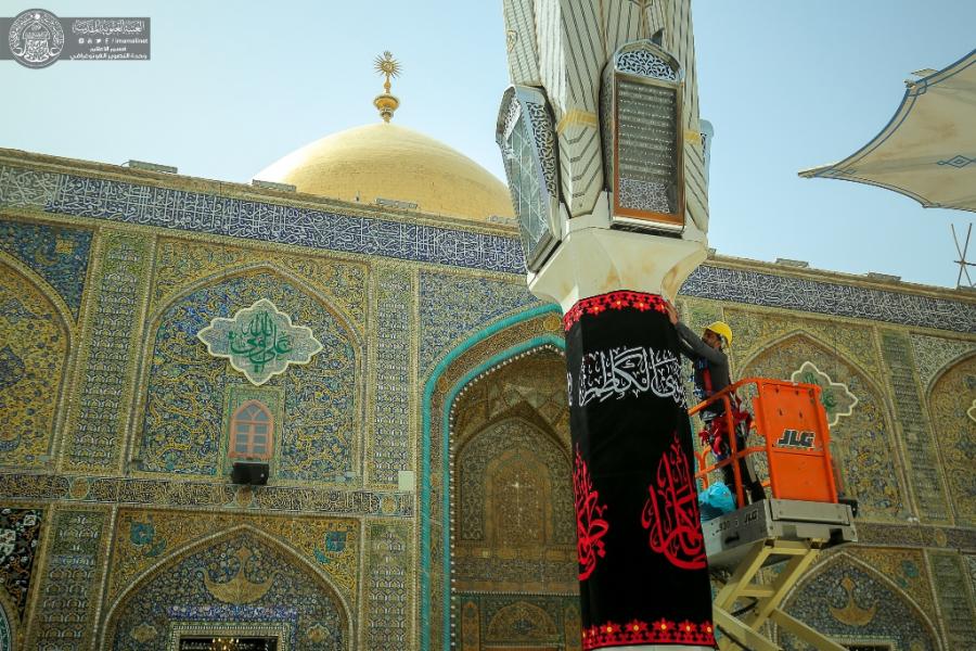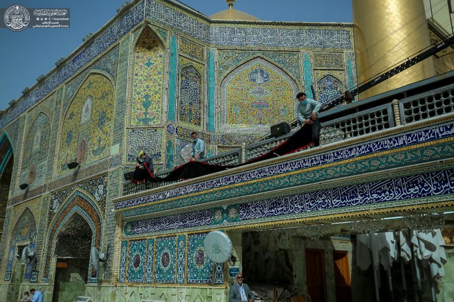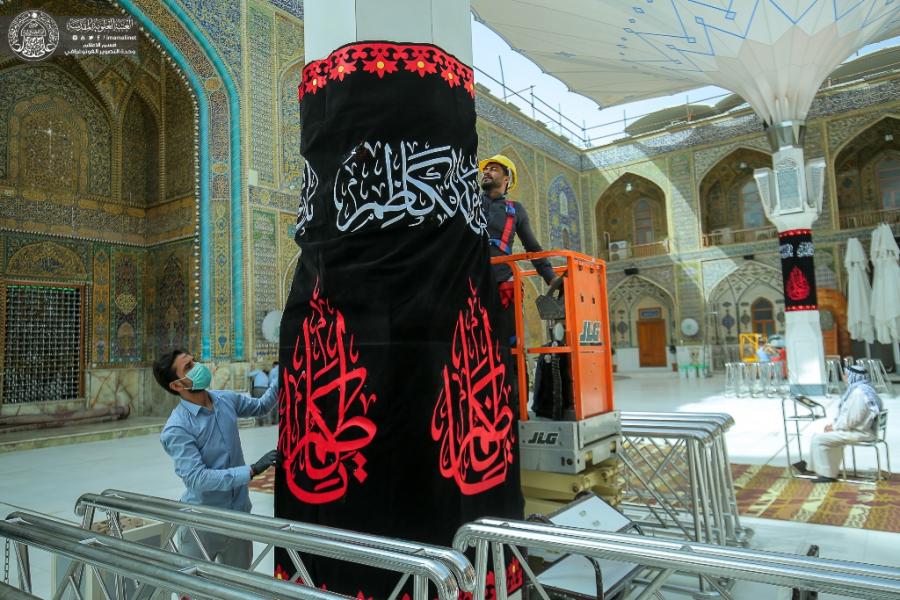 باشرت الكوادر الفنية العاملة في شعبة التطريز التابعة الى قسم المنقوشات وإحياء التراث في العتبة العلوية المقدسة، أعمالها في تأطير أرجاء الصحن الحيدري الشريف بمعالم السواد والعبارات الخاصة بذكرى استشهاد باب الحوائج موسى بن جعفر (عليها السلام).