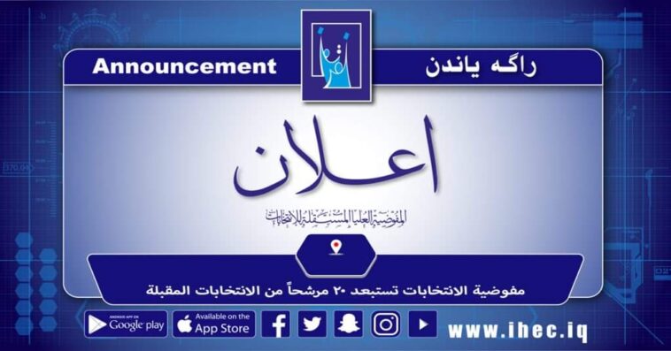 يدعو مكتب انتخابات النجف الاشرف الراغبين من المتعاقدين سابقا ممن عملوا في مراكز التسجيل ومكتب المحافظة لتجديد العقد معهم للعمل ضمن مراكز التسجيل ومكتب المحافظة للفتره المقبلة، وتقديم طلباتهم في مقرب المكتب الواقع في النجف الاشرف/ حي الامير لمدة ثلاث ايام : اعتبارا من يوم الخميس ٥/٨/٢٠٢١ ولغاية يوم السبت الموافق ٧/٨/٢٠٢١ مستصحبين معهم نسخة من المستمسكات الثبوتية إضافة إلى نسخة من بطاقة الناخب والشهادة الدراسية