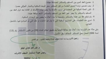 استثمار النجف الاشرف تصدر تعليمات مشددة للمستثمرين بالمجمعات السكنية تهدف لحماية المستفيدين من التلاعب والاحتيال