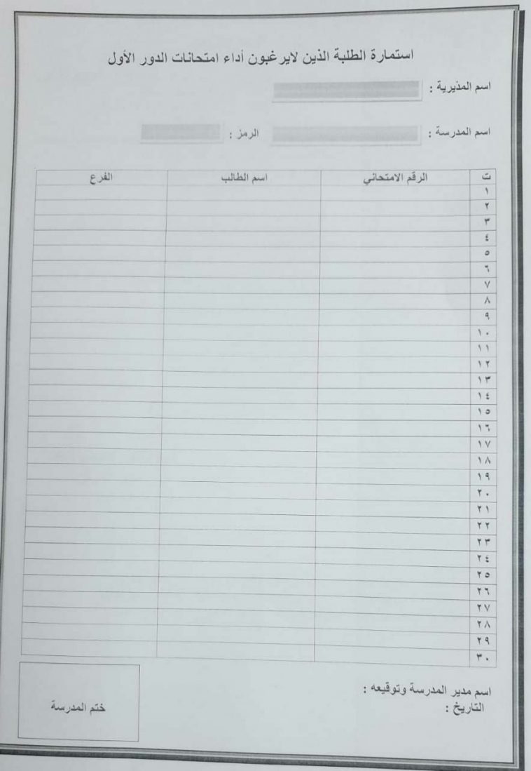 وأوضحت الوزارة عبر بيان اصدرهُ المكتب الإعلامي ، انها خصصت استمارة للطالب الراغب بتأجيل الامتحانات، وعليه ملأها بالمعلومات المطلوبة، وبحسب التعليمات المنصوص فيها ، حيث يتم التقديم عبر المدرسة التابع لها.