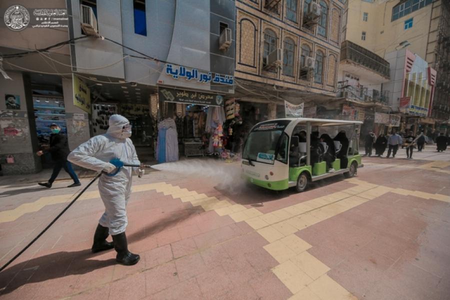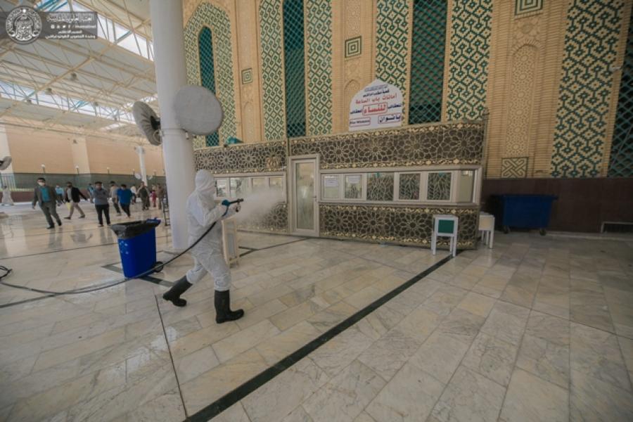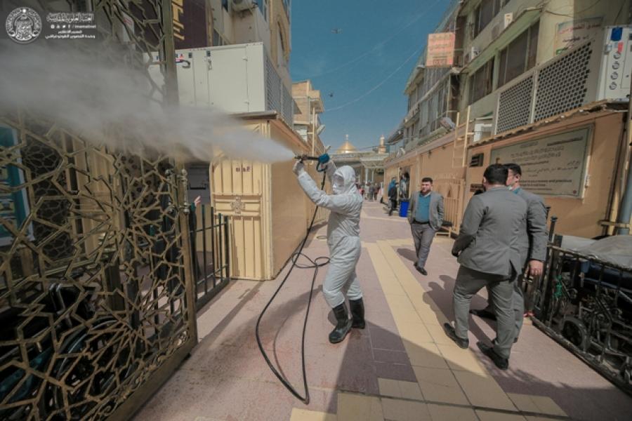 وتابع” تم استخدام جميع المعقمات التي أوصت بها منظمة الصحة العالمية والتي تضمنت تراكيز محددة للمواد المستخدمة من مناشئ عالمية رصينة للمساهمة في حماية أبناء مدينة النجف الأشرف وزائريها الوافدين إليها للتشرف بزيارة مرقد أمير المؤمنين (عليه السلام)”.