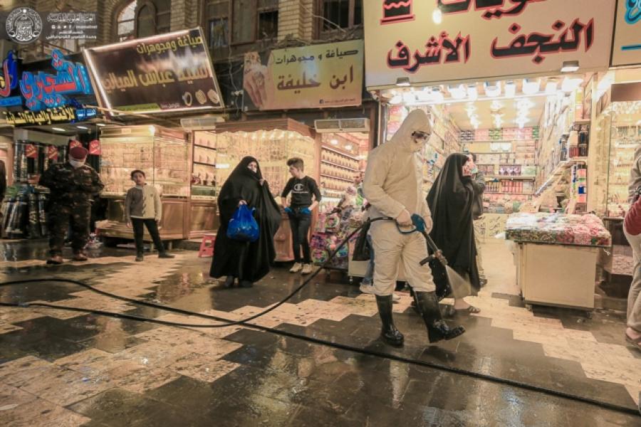 أنجزت الكوادر الميدانية العاملة في قسم السلامة المهنية والصحة والبيئة المرحلة الأولى من حملتها الميدانية لتعقيم وتطهير أرجاء المدينة القديمة في النجف الأشرف.