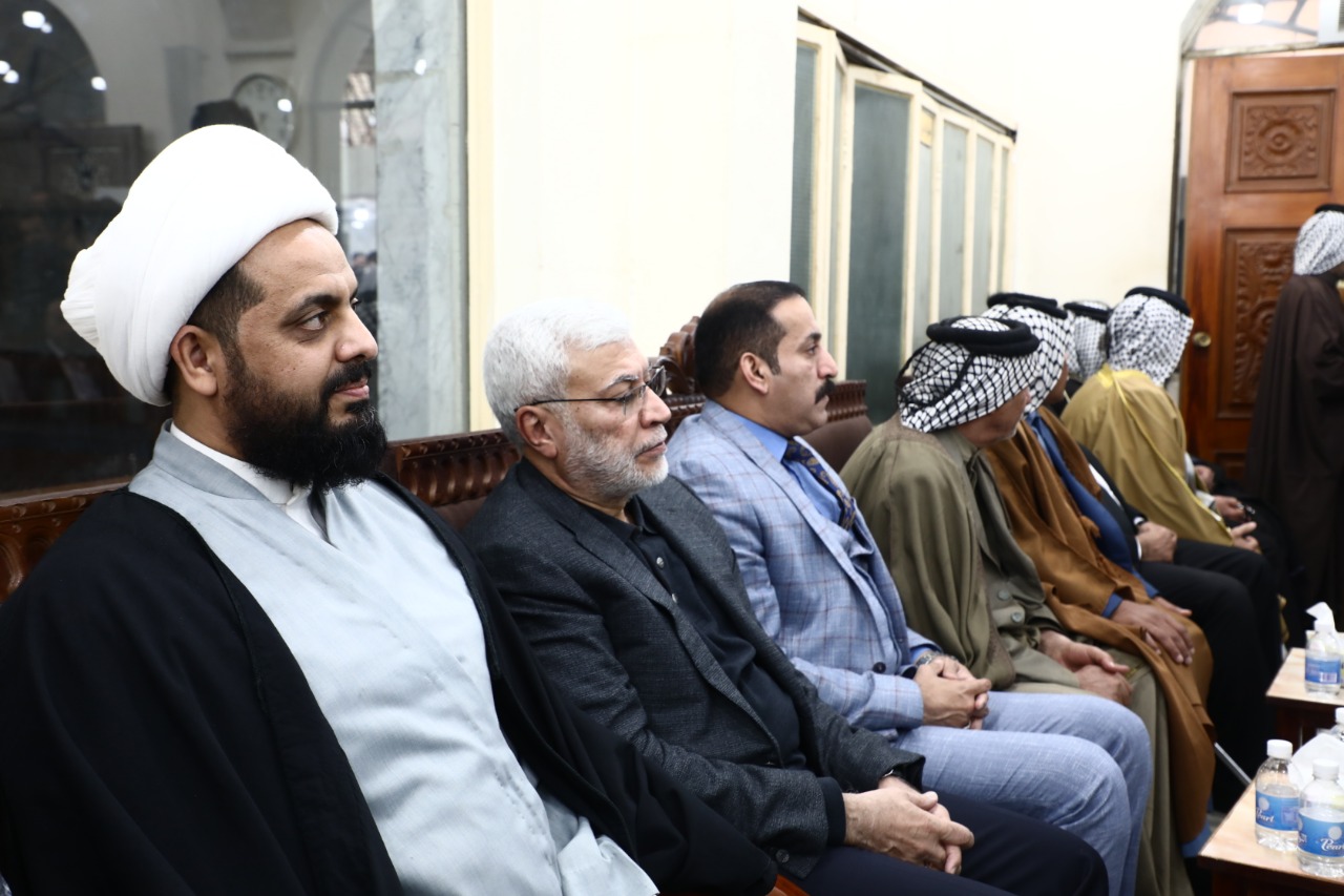حضر اليوم الإثنين الأمين العام لحركة عصائب أهل الحق سماحة الشيخ قيس الخزعلي مجلس الفاتحة على روح الشهيد احمد المهنا اللامي المقام في حسينية الزوية ببغداد والذي حظي بحضور حشد جماهيري كبير وقادة الحشد الشعبي .