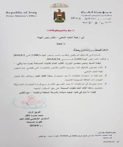 وامر المهندس حسب الوثيقة، بـ”اخلاء مدينة الموصل من أي قوات تابعة لهيئة الحشد الشعبي”، مبيناً ان “المقر الحالي لقيادة الحشد الشعبي يكون مقراً لقيادة محور نينوى”.