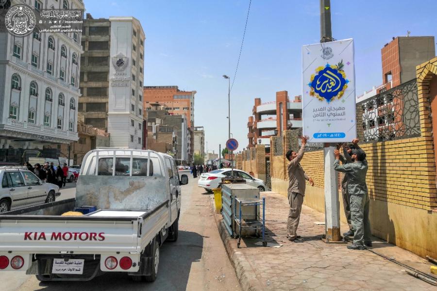 العتبة العلوية تباشر بطباعة وتركيب أكثر من (150) إعلاناً خاصاً بمناسبة عيد الغدير الأغر