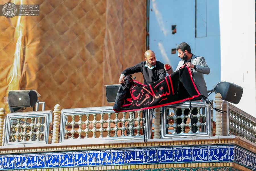 أكملت الكوادر الفنية العاملة في قسم المنقوشات وإحياء التراث أعمالها في تعليق اللافتات الخاصة بإحياء ذكرى وفاة السيدة أم البنين فاطمة بنت حزام (عليها السلام) في رحاب مرقد أمير المؤمنين (عليه السلام).