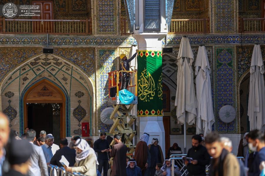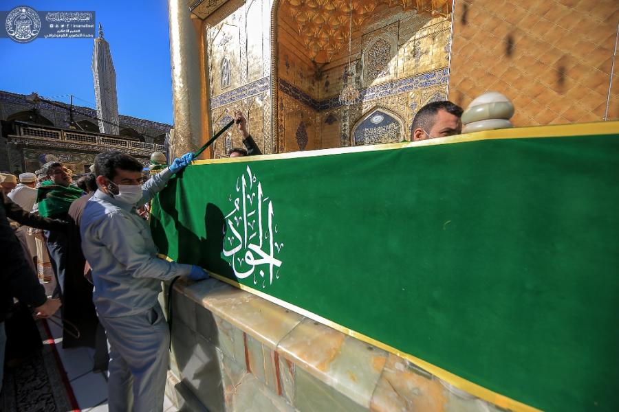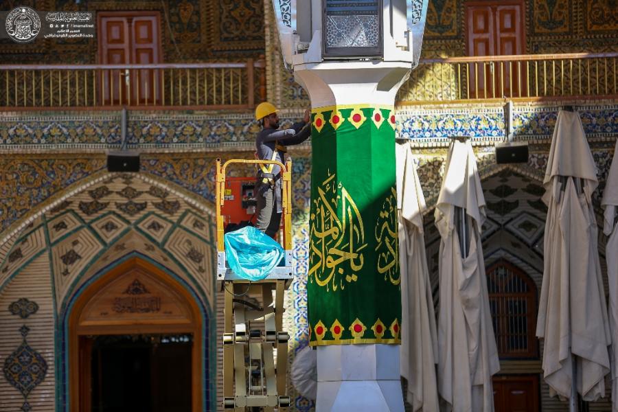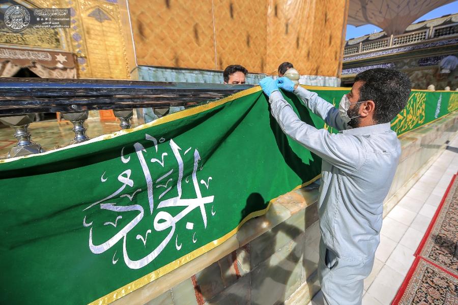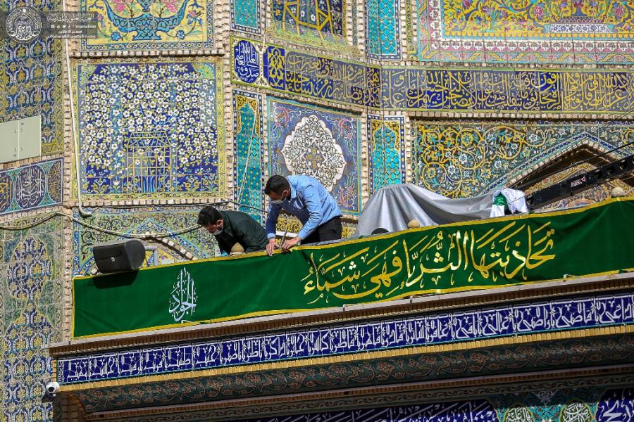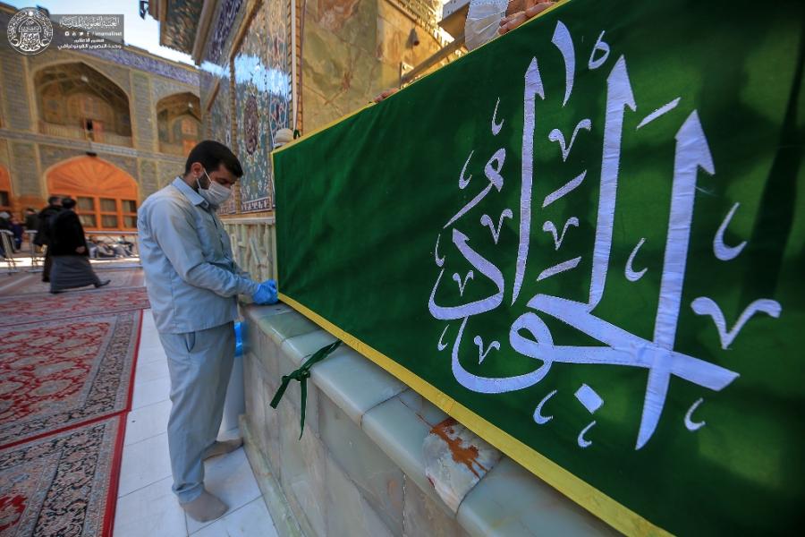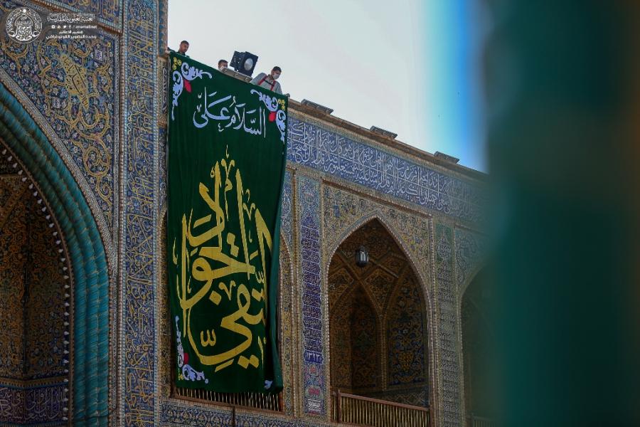 استبدلت كوادر العتبة العلوية المقدسة راية القبة الشريفة كما نشرت قطع التهنئة في ارجاء الصحن المطهر بمناسبة ولادة تاسع الأئمة الأطهار الإمام النقي محمد الجواد (عليه السلام).