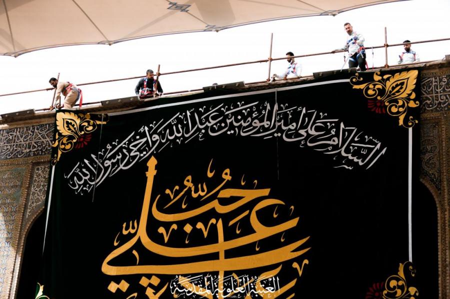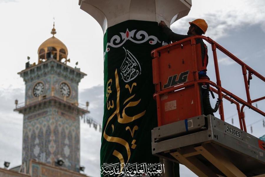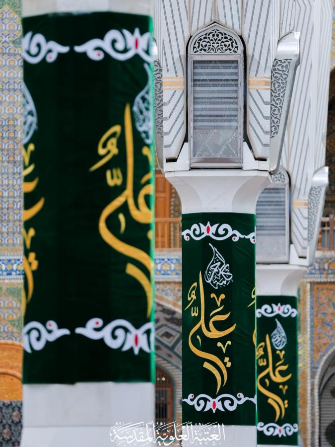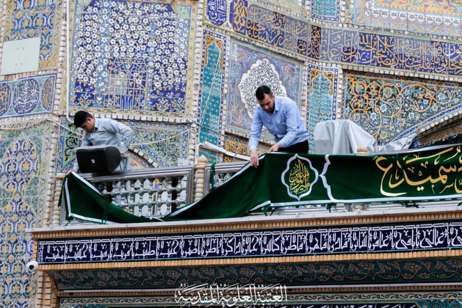 شهدت الأرجاء المباركة للصحن الحيدري الشريف لمرقد أمير المؤمنين (عليه السلام) باللافتات الخضراء المؤطرة بالورود والزهور الطبيعية، من قبل كوادر شعبة التطريز التابعة لقسم المنقوشات وإحياء التراث، وذلك ضمن الاستعدادات الجارية لإحياء ذكرى الولادة الميمونة لأمير المؤمنين وسيد الوصيين وقائد الغر المحجلين الإمام علي بن أبي طالب (عليه السلام).