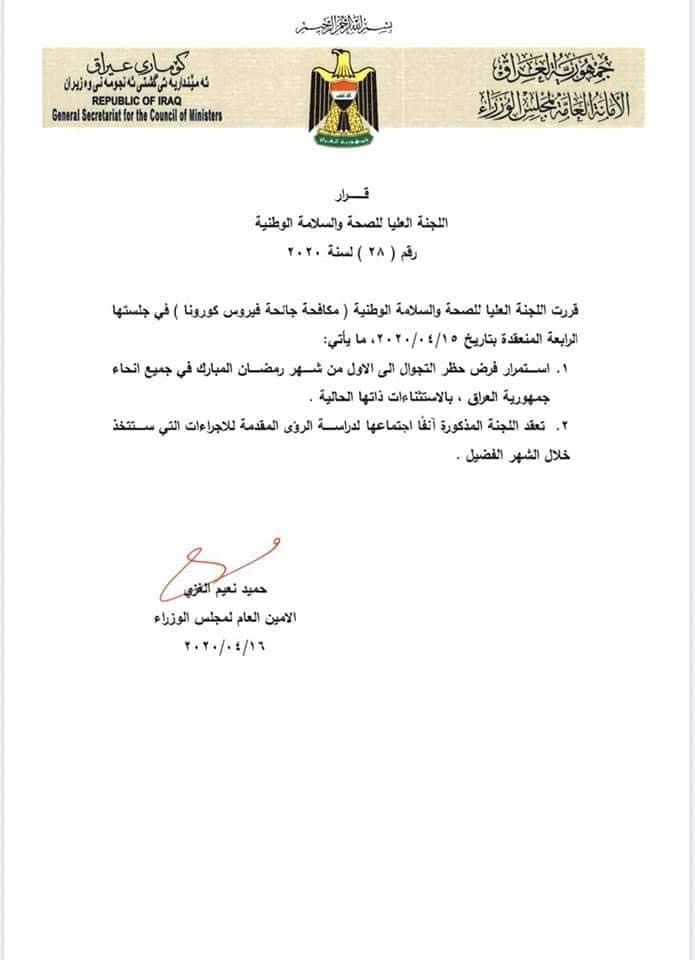 in السياسية بالوثيقة اللجنة العليا للسلامة الوطنية تمدد الحظر حتى الاول من شهر رمضان المبارك 18 أبريل، 2020, 6:25 م