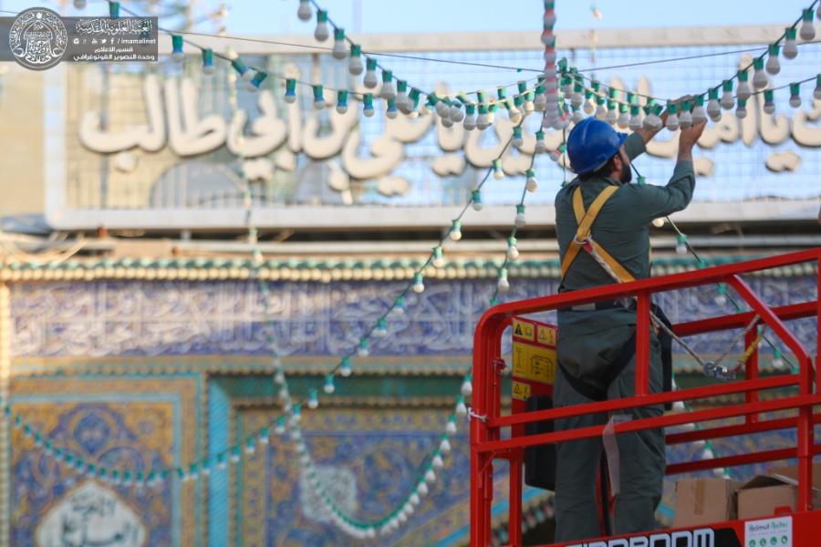 وأضاف، ان” الأعمال تمثلت بتركيب مصابيح الإنارة الملونة من نوع (LED) بلونين (الأحمر والأخضر) ، فضلا عن تركيب نحو (12) مصباحا من نوع (بلاجكتور) ، وذلك بعد نشر أكثر من (5 ) آلاف مصباح بألوان مختلفة في الصحن العلوي المطهر .