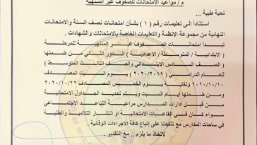التربية تُحدد موعد امتحانات الدور الثاني للصفوف غير المنتهية بضمنها السادس الابتدائي والثالث المتوسط للعام الدراسي 2019 – 2020