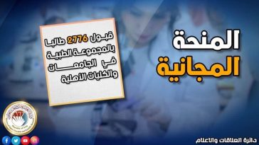 التعليم تعلن قبول أكثر من ألفين وسبعمئة (2776) طالبا ضمن المنحة المجانية الخاصة بالمجموعة الطبية