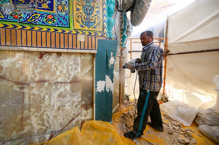 وأضاف ان” السنادين التي تم استبدالها في الأصل مصنوع من مادة الاسمنت وحدثت عليها أعمال صيانة وترميم في أوقات سابقة، وسيتم استبدالها بسنادين من المرمر لتظهر بالمظهر المناسب لقدسية المكان ، فضلا عن مقاومتها للظروف الجوية.