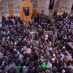 ووسط الاهازيج والشعارات الحسينية الفاطمية انطلقت جموع المعزين نحو الصحن الحيدري الشريف .