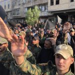 ووسط الاهازيج والشعارات الحسينية الفاطمية انطلقت جموع المعزين نحو الصحن الحيدري الشريف .
