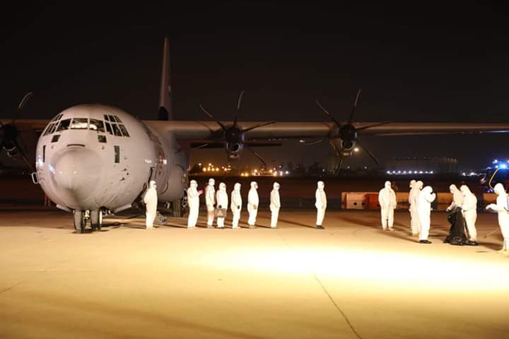 الصحة تعلن وصول الطائرة العسكرية العراقية المحملة بالأجهزة والمستلزمات الطبية من دولة الصين الشقيقة
