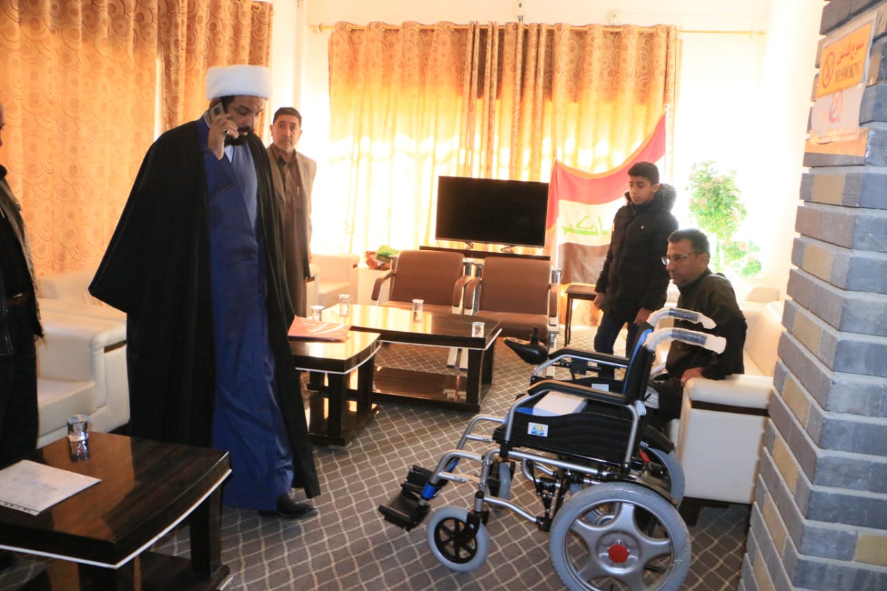 التقى سماحة الشيخ طاهر الخاقاني رئيس اللجنة العليا لدعم الحشد الشعبي في ديوان الوقف الشيعي صباح هذا اليوم عدد من المجاهدين الابطال ويوجه بارسال مجموعة منهم الى خارج العراق من الذين نالو وسام الفخر والشرف في معارك التحرير ضد عصابات داعش التكفيرية من الذين سبق ارسالهم ، وكونهم لم يكتسبوا الشفاء التام  امر بارسالهم الى مستشفيات مشهد المقدسة في جمهورية ايران الاسلامية لاستكمال العلاج على نفقة اللجنه ، وفي هذا السياق التقى سماحة الشيخ الخاقاني المقاتل البطل ( ثائر شرقي صباح) والمنسوب الى لواء انصار المرجعية والذي فقد احد اطرافه السفلى في معركة تحرير تل عبطة شرق الموصل وامر بشراء عربه الكترونية لتساعده علي التنقل من مكان لٱخر، هذا وقد سارعت اللجنة بتجهيزه بهذه العربة ٱنفة الذكر وتسليمها له . جاء ذلك خلال توجيهات سماحة السيد علاء الموسوي رئيس ديوان الوقف الشيعي وحرصه الشديد على استمرار عمل اللجنة وضرورة الاهتمام بعوائل الشهداء والجرحى الابطال .