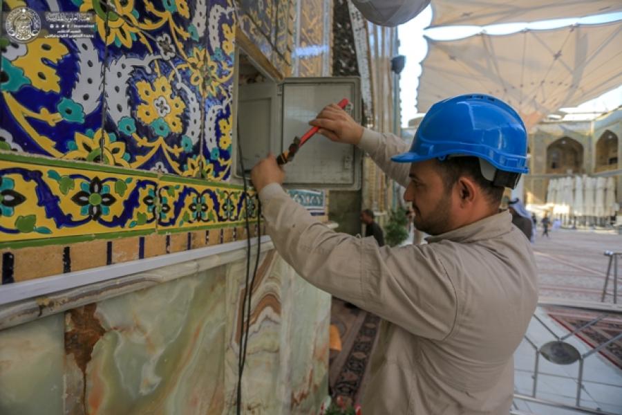 وأضاف” تم ربط الصلاة الثانية التابعة لقسم شؤون حفظ النظام الخارجي بإمامة السيد محمد صادق الخرسان بالمنظومة الداخلية ليصبح التحكم من مركز الصوتيات ضمن الكنترول الخاص التابع لشعبة الإخراج الصوتي، وستشمل حملة التأهيل والصيانة كل الوحدات والأنظمة الصوتية التابعة إلى العتبة المقدسة.
