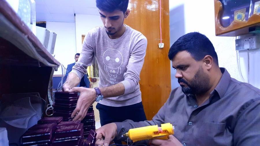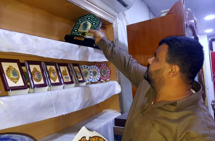 وأضاف” اللوحات بقياسات مختلفة منها المنضدية والجدارية, فضلاً عن عمل الدروع والشهادات التقديرية المهداة إلى الشخصيات الدينية والوفود الرسمية المشاركة في المهرجانات التي تقيمها العتبة المقدسة على مدار العام ، وكذلك الميداليات والأحجار الخاصة بالخواتم .