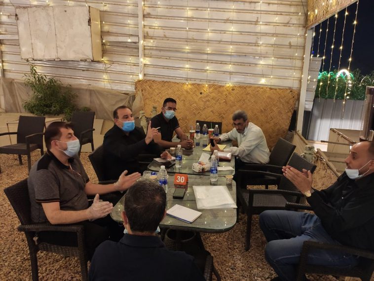هذا وتم عقد الإجتماع حسب توصيات وتعليمات دائرة صحة النجف الأشرف بالإلتزام في التباعد الإجتماعي ولبس الكمامات والكفوف لتجنب الإصابة بالفايروس .