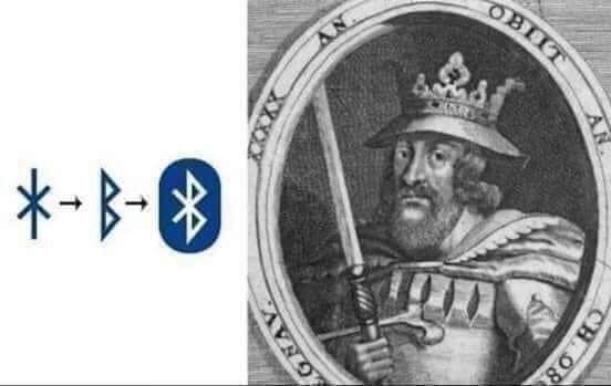 البلوتوث سمي على اسم ملك فايكنغ كان سنه أزرقاً! حتى أن شعار البلوتوث الحالي هو توقيعه سابقاً! الملك هذا عاش قبل ألف سنة وكان ملك “السلام”!