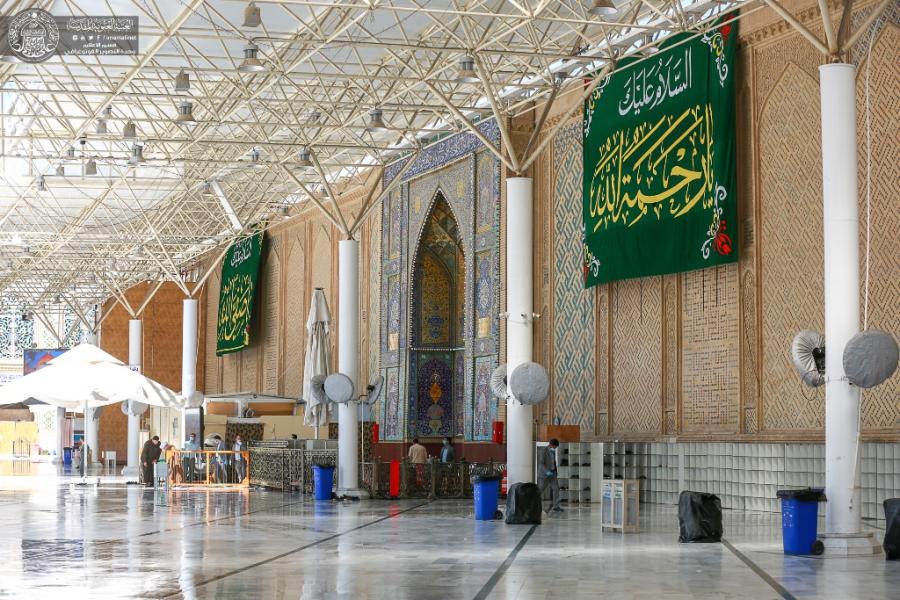 بالصور.. الكوادر الميدانية في قسم السلامة المهنية والصحة والبيئة تواصل تنفيذ حملات التعفير والتعقيم في المحيط الخارجي للصحن الحيدري الشريف