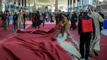 العتبة العلوية : حملة واسعة لرفع السجاد الأحمر وفتح الشوارع الرئيسية المؤدية للحرم العلوي بعد انتهاء مراسيم إحياء العاشر من محرم الحرام