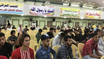 شباب النجف الاشرف يحتفلون بالمولد النبوي الشريف ويرفضونالاساءة لمقام الرسول الاعظم ص