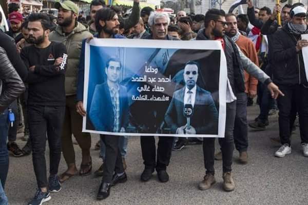 وتابع التقرير بالقول : ان متظاهري البصرة حملوا صورة الصحافيين أحمد عبد الصمد وصفاء غالي اللذين اغتالتهما الميليشيات في المدينة