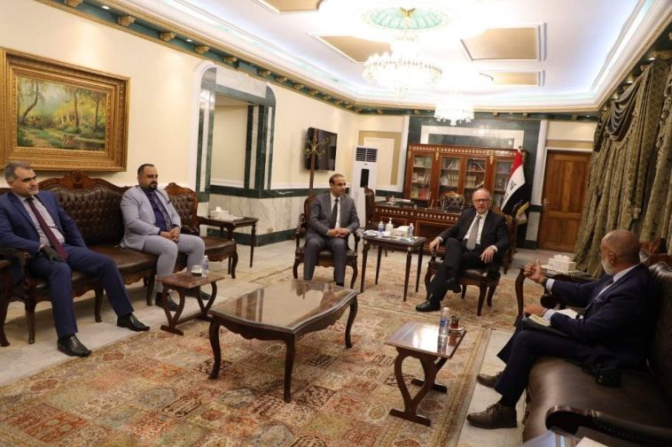 ناقـش وزير العمل والشؤون الاجتماعية الدكتور عادل الركابي مع وزير المالية الدكتور علي علاوي بحضور مدير مكتب البنك الدولي في العراق تغيير مكون النقد مقابل العمل في المشروع الطارئ وتحويله الى ملف دعم النازحين.