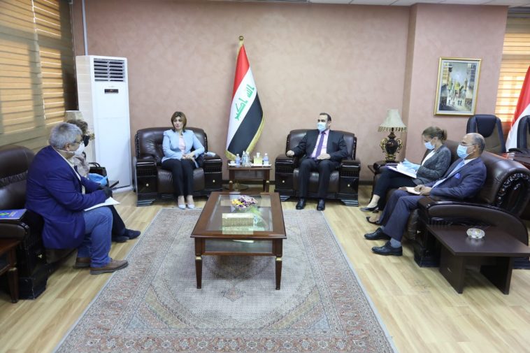 جاء ذلك لدى استقبال السيد الوزير، اليوم الخميس، كل من السيدة وزيرة الهجرة والمهجرين ايفان فائق، والسيدة ايرينا سولارانو، نائب الممثل الخاص للامم المتحدة للشؤون الانسانية في العراق.