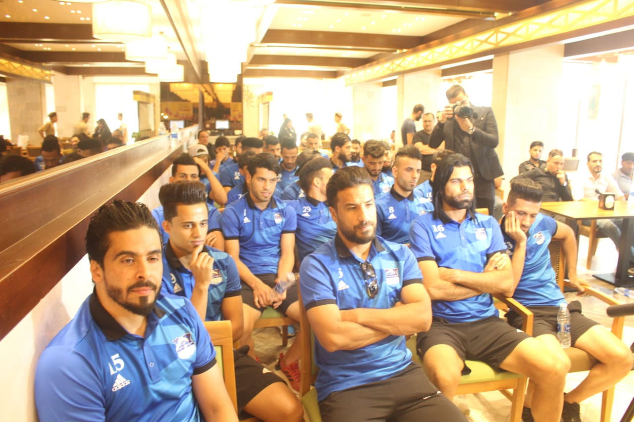 عقدت الهيئة الادارية لنادي النجف الرياضي مؤتمرا صحفيا بحضور اعضاء الهيئة الادارية للنادي والطاقم التدريبي ولاعبي النادي ونجومه .